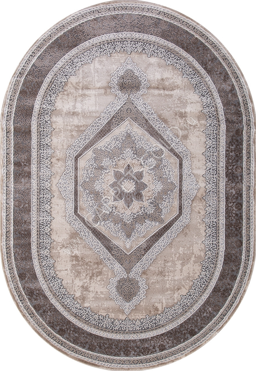 Ковер турецкий 04037C ARMINA (PP Heatset Высокоплотный, бежевый, серый) овальный